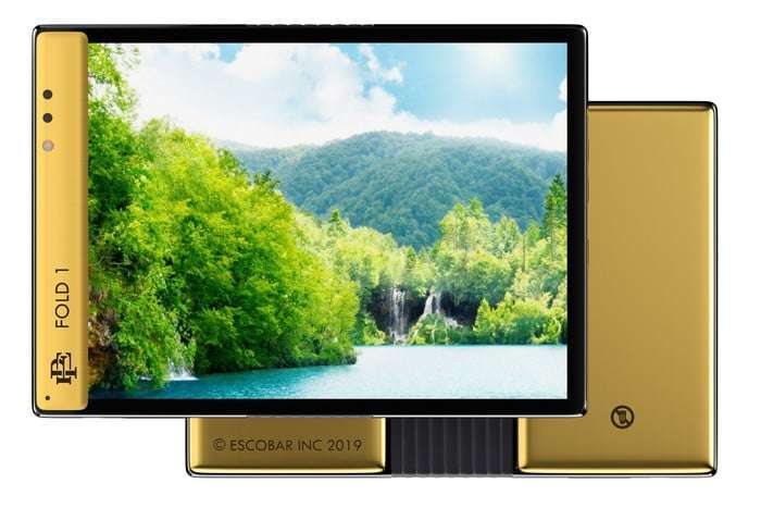 وأطلقت الشركة على الهاتف اسم Escobar Fold 1 وهو في الواقع نسخة محسنة من الهاتف Royole FlexPai القابل للطي مع إضافة بعض العناصر الذهبية.