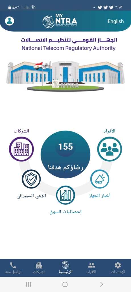 أطلق الجهاز القومي لتنظيم الاتصالات تطبيقه الذي يدعى “My NTRA” لمستخدمي المحمول لتيسير خدمات الاتصالات الأساسية للمستخدمين من الأفراد والشركات.