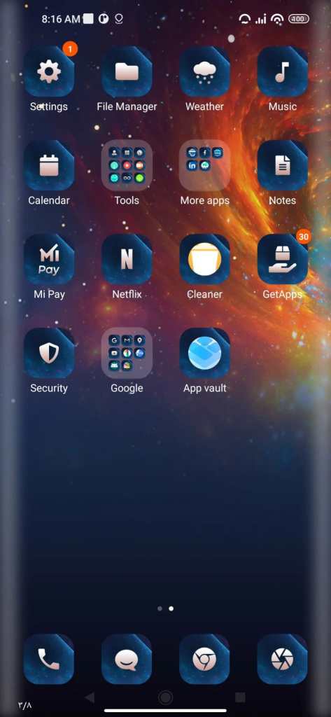 عند تفعيل الثيم على هاتف شاومي، ستلاحظ الفور أن التصميم العام للواجهة يتغير تمامًا، حيث يتم تغيير الخلفية والرموز والخطوط والأيقونات وغيرها من العناصر الأساسية للواجهة الرئيسية والتطبيقات.