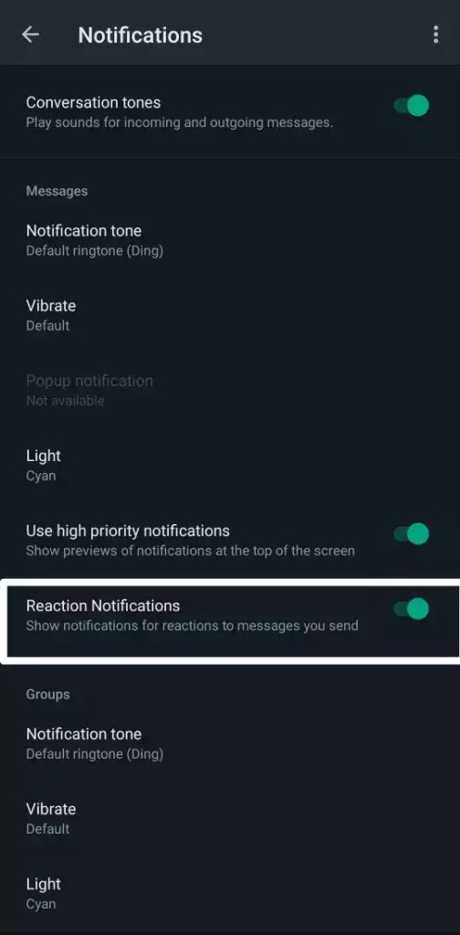 قد تعتقد عن طريق الخطأ أنك تلقيت رسالة WhatsApp لأن إشعارات التفاعل مع الرسائل تشبه إشعارات الرسائل. ومع ذلك، يتيح WhatsApp للمستخدمين تعطيل إشعارات “التفاعل مع رسالتك”.