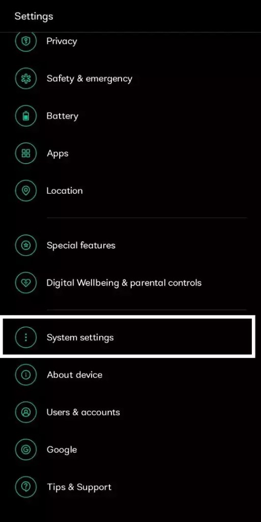 2- قم بالتمرير لأسفل وانتقل إلى علامة التبويب إعدادات النظام.